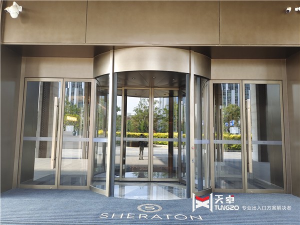 在設計上,酒店充分融入了多種喜來登品牌煥新元素,使得整個空間既保留了喜來登一貫的優雅與舒適,又增添了幾分西安獨有的文化韻味。步入酒店大堂,兩翼旋轉門緩緩開啟,仿佛是在歡迎每一位遠道而來的客人,同時也為酒店增添了一份莊重與氣派。這扇旋轉門正是由西安天卓自動門精心制作安裝的,其精湛的工藝和流暢的線條,與酒店的整體風格相得益彰。